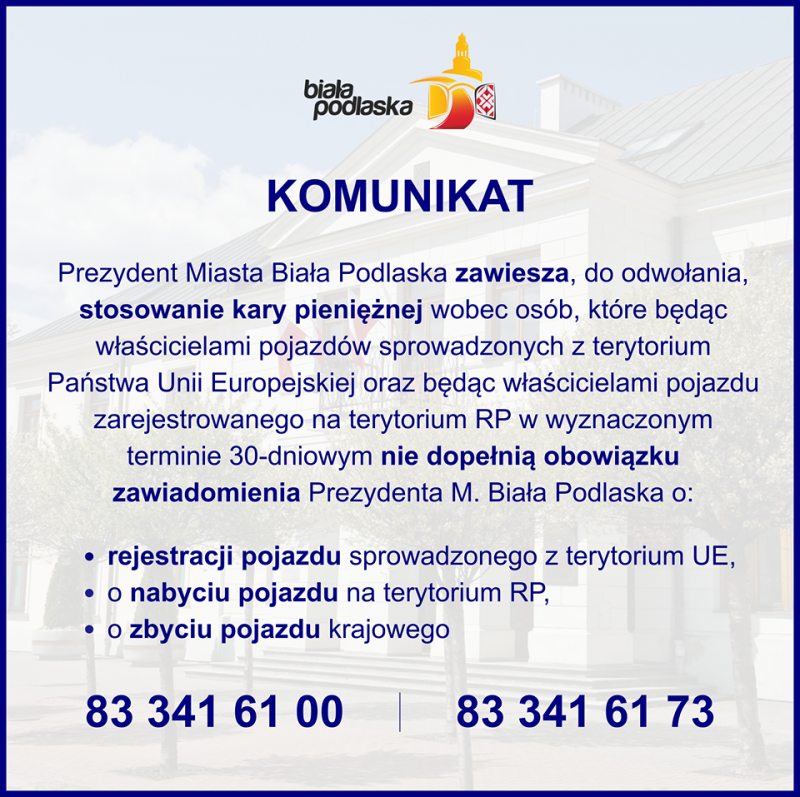 Przypominamy o decyzjach Prezydenta Miasta Biała Podlaska odnośnie do rejestracji pojazdów i odroczenia opłat za podatek.