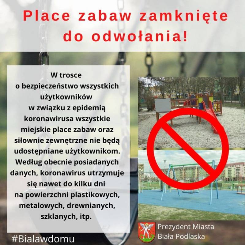 Prezydent Michał Litwiniuk wydał decyzję o zamknięciu placów zabaw i siłowni na świeżym powietrzu, by ograniczyć ryzyko rozprzestrzeniania się koronawirusa.