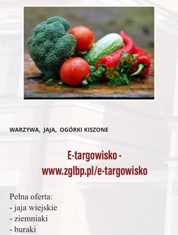Przypominam, że wychodząc naprzeciw stworzeniu bezpiecznych warunków handlu produktami rolno-spożywczymi, Zakład Gospodarki Lokalowej sp. z o.o. uruchomił na początku tygodnia usługę e-targowisko, dostępną na stronie: www.zglbp.pl/e-targowisko.