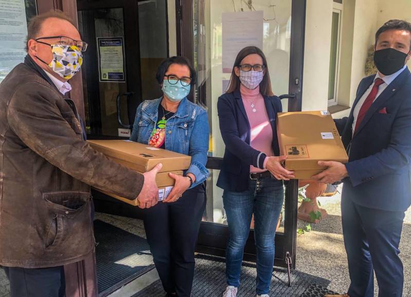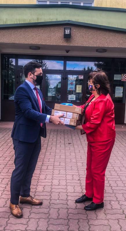 Bialskie szkoły otrzymają laptopy zakupione przez  Miasto Biała Podlaska w ramach projektu „Zdalna Szkoła”. To sprzęt o wartości 119 556 zł. Prezydent Michał Litwiniuk przekazał  pierwsze komputery Zespołowi Szkół Specjalnych i IV LO im. Stanisława Staszica.