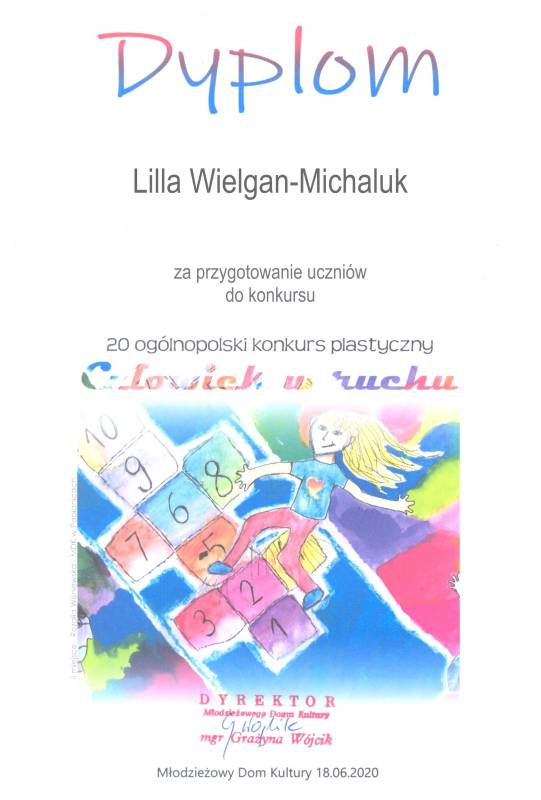 W ostatnim czasie rozstrzygnięto 20 Ogólnopolski Konkurs Plastyczny „Człowiek w ruchu" organizowany przez Młodzieżowy Dom Kultury im. Heleny Salskiej w Pabianicach. Na konkurs napłynęło 425 prac z 77 placówek oświatowych i kulturalnych. Prace oceniała komisja konkursowa, w skład której wchodzili artyści plastycy. Wśród wyróżnionych w kategorii wiekowej 10 lat, znalazła się podopieczna Bialskiego Centrum Kultury,