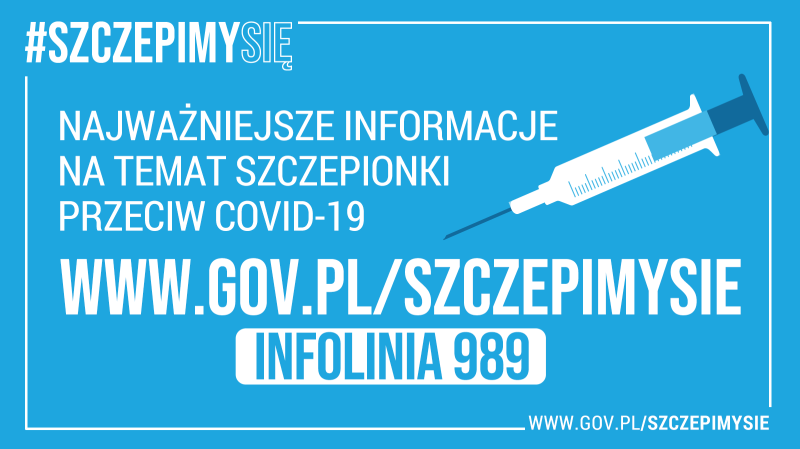 Zachęcamy do zapoznania się z informacjami nt. szczepień przeciwko COVID-19 przygotowanymi przez Ministerstwo Zdrowia: https://www.gov.pl/web/szczepimysie