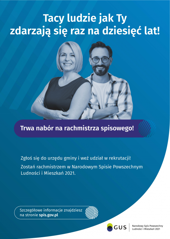 W dniach od 1 do 9 lutego 2021 r. w Urzędzie Miasta Biała Podlaska trwa nabór kandydatów na rachmistrzów spisowych w Narodowym Spisie Powszechnym Ludności i Mieszkań 2021. Spis będzie przeprowadzony w terminie od 1 kwietnia do 30 czerwca 2021 r.