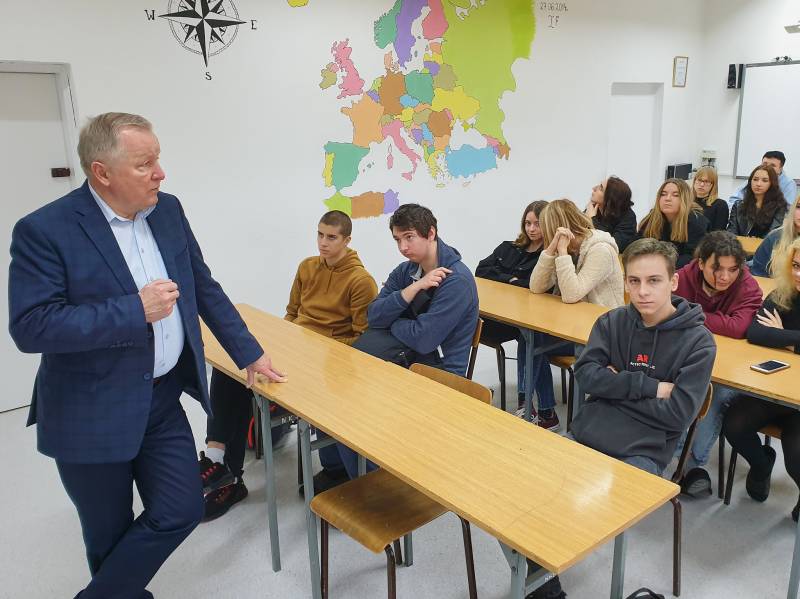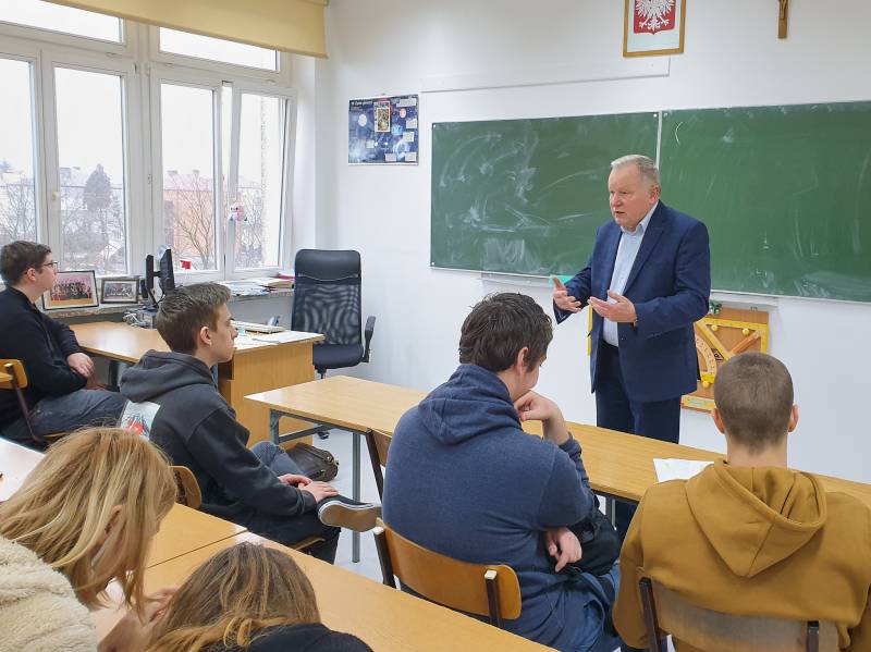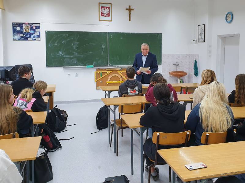 Dzisiaj, z okazji 40 rocznicy wprowadzanie stanu wojennego w Polsce, gościliśmy w IV LO im. Stanisława Staszica w Białej Podlaskiej pana Andrzeja Czapskiego - opozycjonistę, działacza Solidarności w okresie PRL, senatora I oraz II kadencji Senatu RP, wicemarszałka Senatu II kadencji, byłego wojewodę bialskopodlaskiego, prezydenta miasta Biała Podlaska w latach 1998 – 2014.