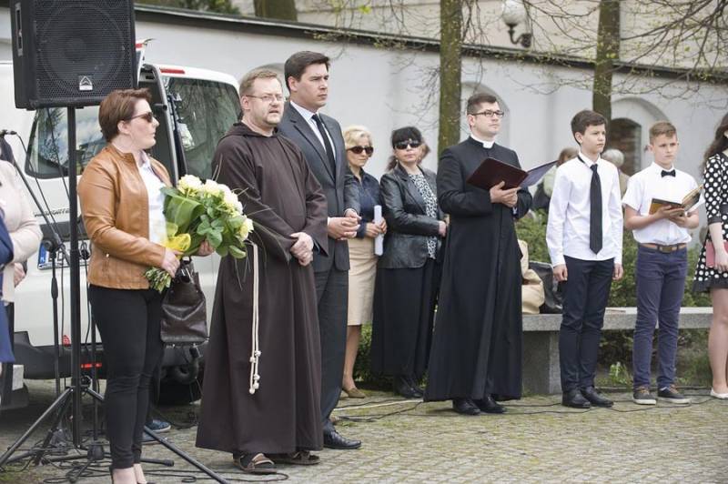 Młodzież zaprezentowała specjalną część artystyczną poświęconą świętemu, a prezydent oraz dyrekcja szkoły złożyli kwiaty pod pomnikiem Jana Pawła II.