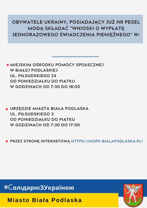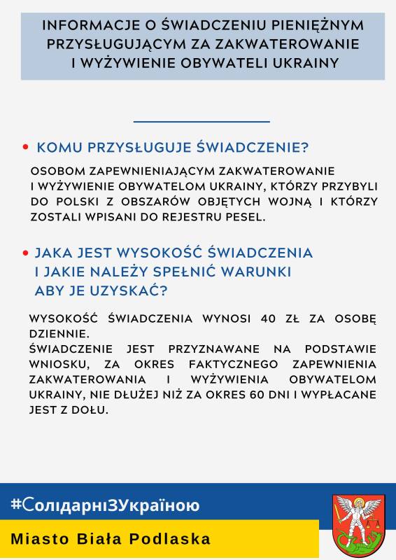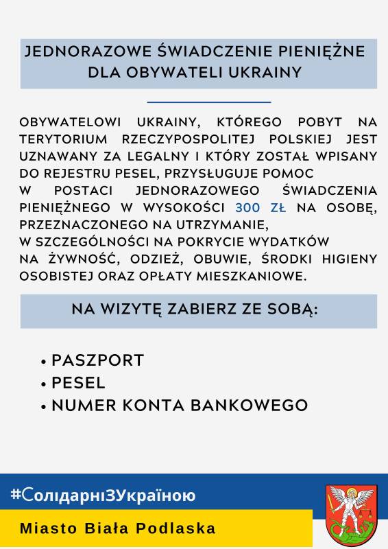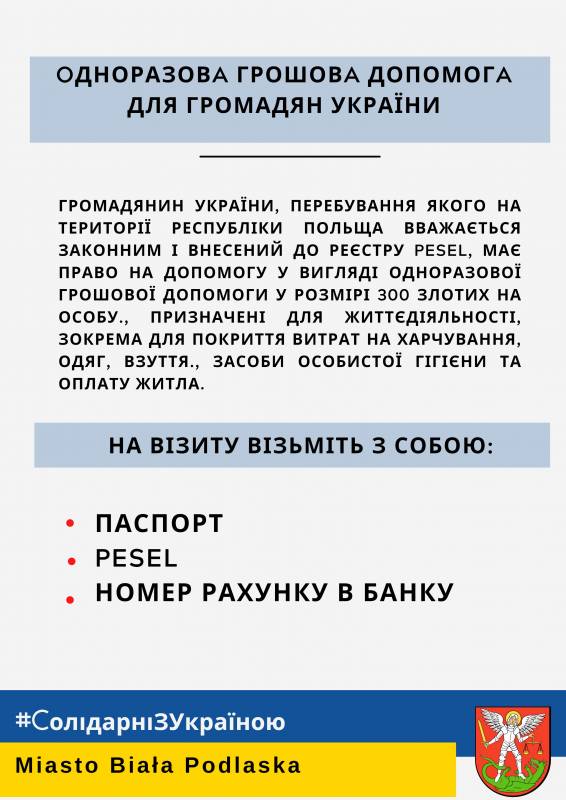 Pomoc uchodźcom z Ukrainy - świadczenia pieniężne