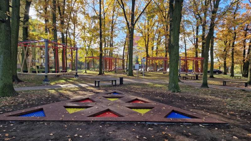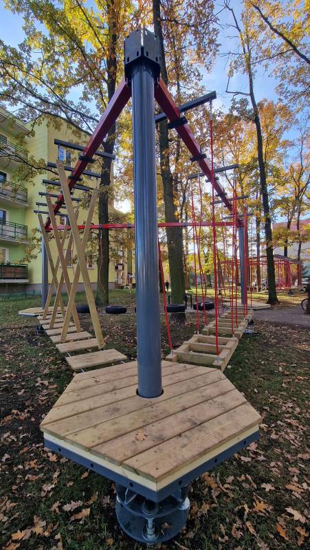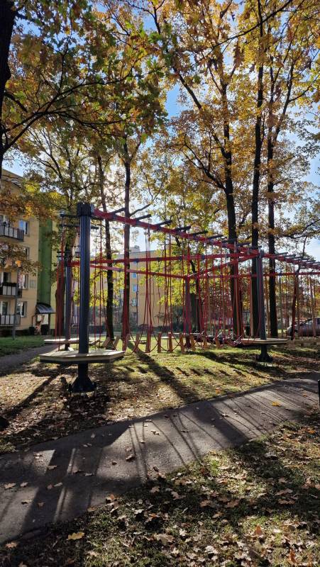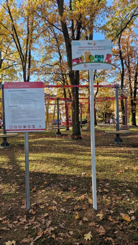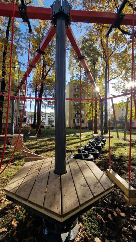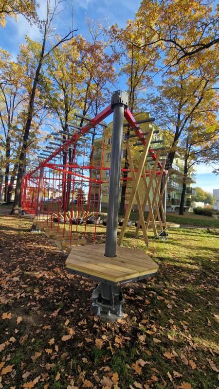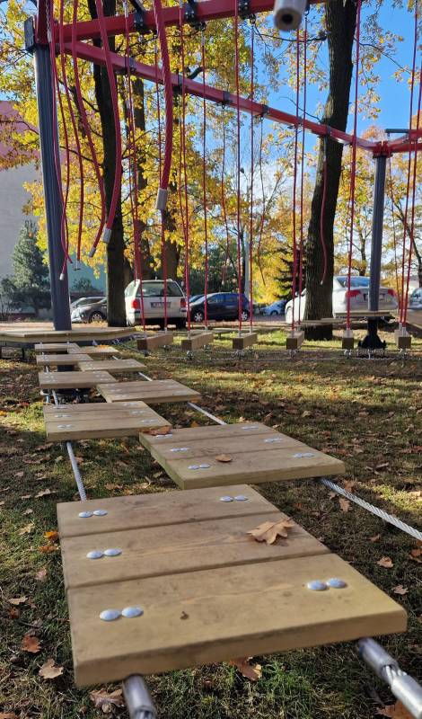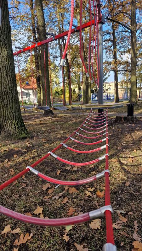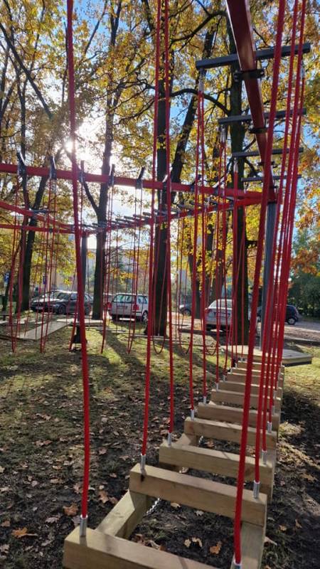 W ramach inwestycji Parku Linowego wykonano 3 moduły o różnych stopniach trudności, w których skład wchodzi 15 platform, 21 przeszkód i 9 mini trampolin. Dodatkowo zainstalowano ławki parkowe, stojaki na rowery, barierki chodnikowe oraz kosze na śmieci.