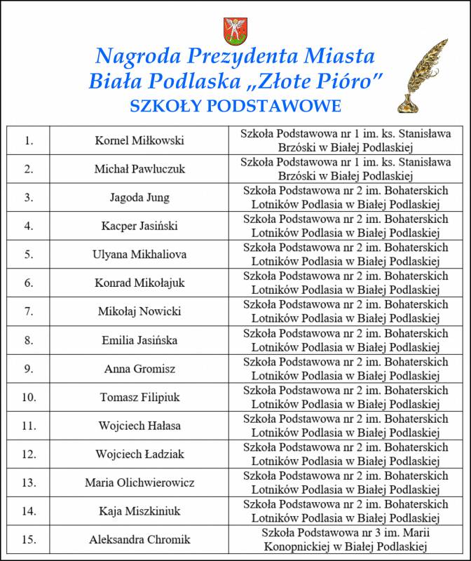 Prezydent Michał Litwiniuk wręczył Złote i Diamentowe Pióra wybitnie uzdolnionym
