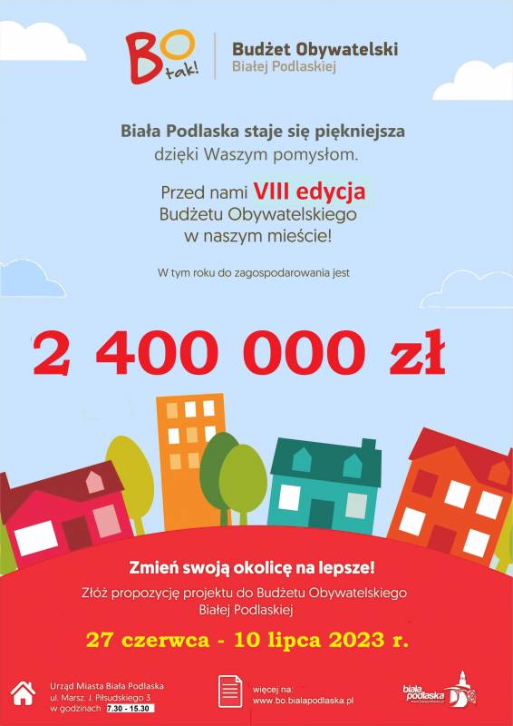 Od 27 czerwca do 10 lipca mieszkańcy Białej Podlaskiej już po raz ósmy będą mogli złożyć swoje projekty w ramach budżetu obywatelskiego.