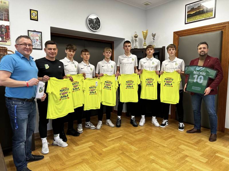 Prezydent miasta Michał Litwiniuk pogratulował młodym piłkarzom, przekazując pamiątkowe koszulki miasta mistrzów.