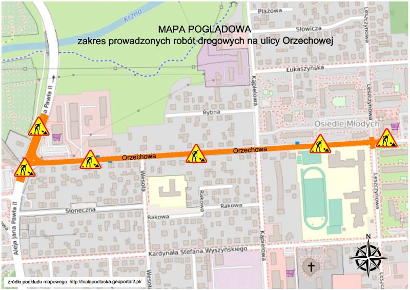 W ruchu pojazdów kołowych jak i pieszych na ulicy Orzechowej, Leszczynowej, Kąpielowej oraz Al. Jana Pawła II mogą wystąpić utrudnienia.