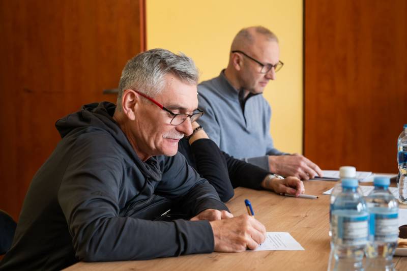 Trwa budowa mostu na Krznie - wczoraj odbyła się Rada budowy z udziałem prezydenta Michała Litwiniuka, wykonawców - przedstawicieli firmy Nowak-Mosty, inżyniera nadzoru Waldemara Jakubaszka i jego zespołu, naczelnika Gabinetu Prezydenta Wojciecha Sosnowskiego, naczelnika Wydziału Dróg UM Renaty Tychmanowicz i inżyniera Pawła Kołodziejskiego z Referatu Budowy Dróg UM.