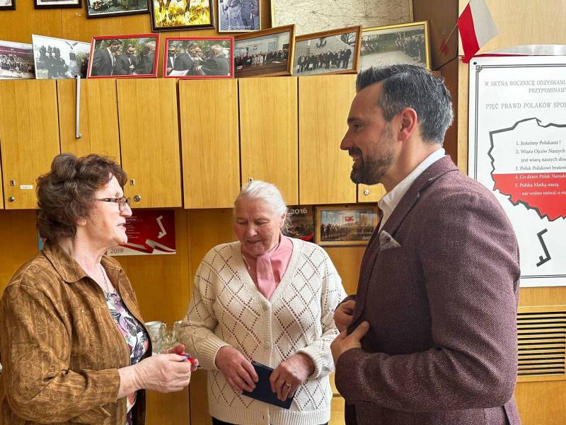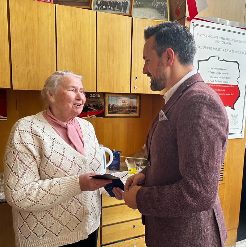 Podczas dzisiejszego zebrania stowarzyszenia pani prezes Zofia Chromiuk wręczyła prezydentowi Michałowi Litwiniukowi szczególne odznaczenie przyznane przez Zarząd Główny w Myśliborzu – Krzyż Błękitny Stowarzyszenia Dzieci Wojny w Polsce przyznawany za działania społeczne na rzecz stowarzyszenia.