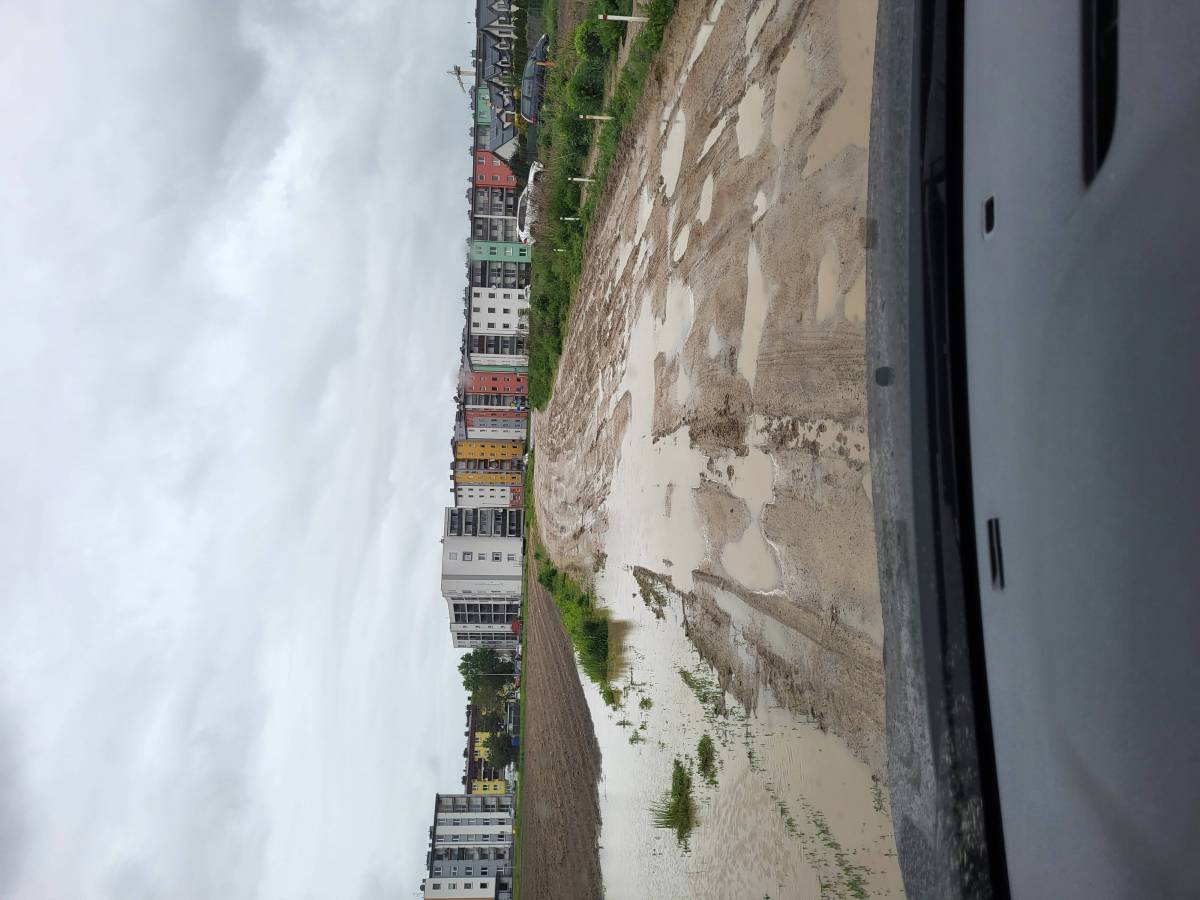 Uszkodzona droga na ul A. Fieldorfa. Dzieci nie mogą przejść przez błoto, mają trudności z jazdą na rowerze. Samochody też mają trudności z jazdą.